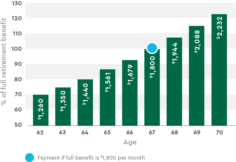 - If you wait until 70, your Social Security benefit can be up to 76 percent higher opens in a new window than if you start taking it at 62.